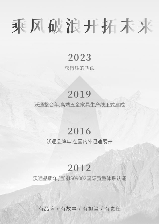 沃通五金將積極弘揚中國家具文化,綜合國際家具潮流,運用無限的創(chuàng)意,設計生產出大量造型美觀,引領時代潮流的新產品。